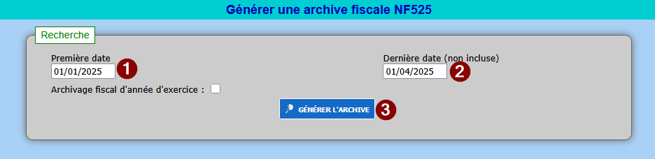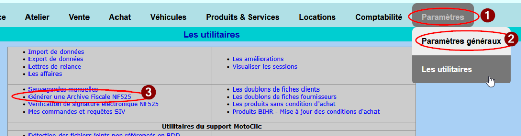 Aller dans « Paramètres » -> « Les utilitaires » -> « Générer une archive Fiscale NF525 » :