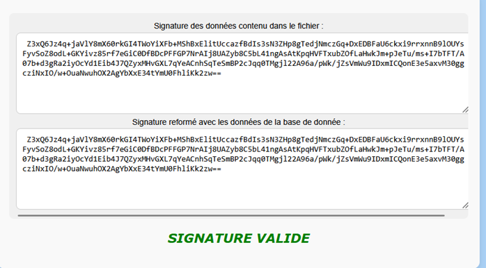 Si la signature stockée pour l’archive et la signature reproduite sont les mêmes, alors l’archive est valide ; sinon, la signature est invalide.