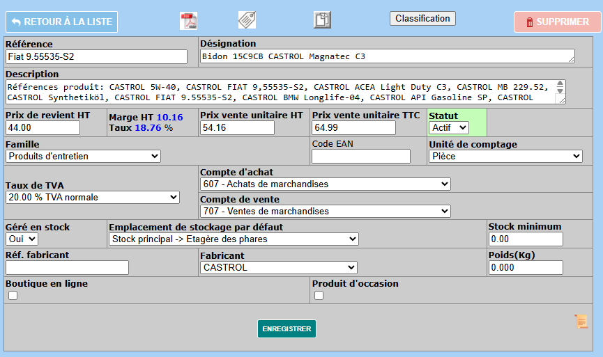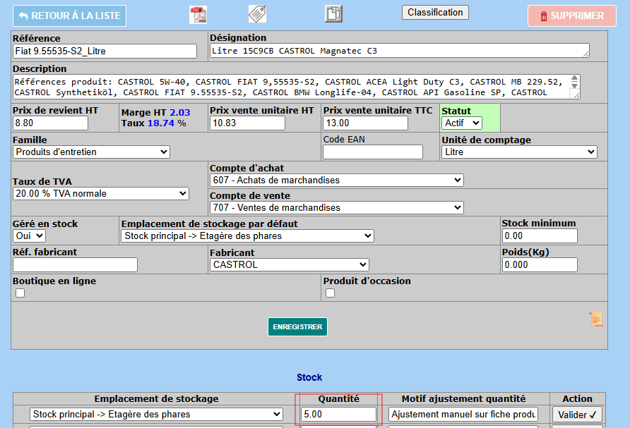 - J’achète des bidons de 60 litres d’huile, mais je la revends au litre aux clients lors d’opérations de vidange.
