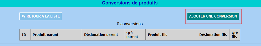 Dans les Paramètres -> Paramètres généraux -> Paramètres des produits -> Les conversions de produits, nous allons ajouter une conversion :