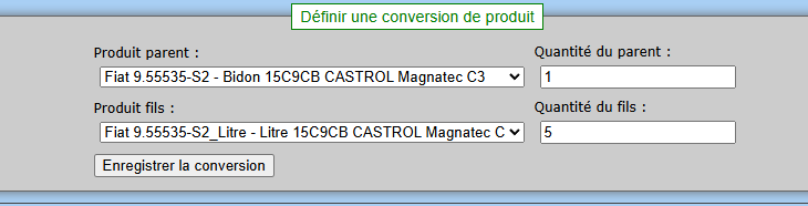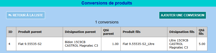 Nous définirons que 1 produit Source = 5 produits de Destination(un bidon d’huile = 5 L d’huile).