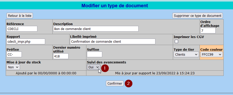 Mais vous pouvez aussi si vous le souhaitez activer le suivi d’avancement sur d’autres types de documents clients : Devis Client, Bons de commande Client, Bon de livraison Client, Factures client.