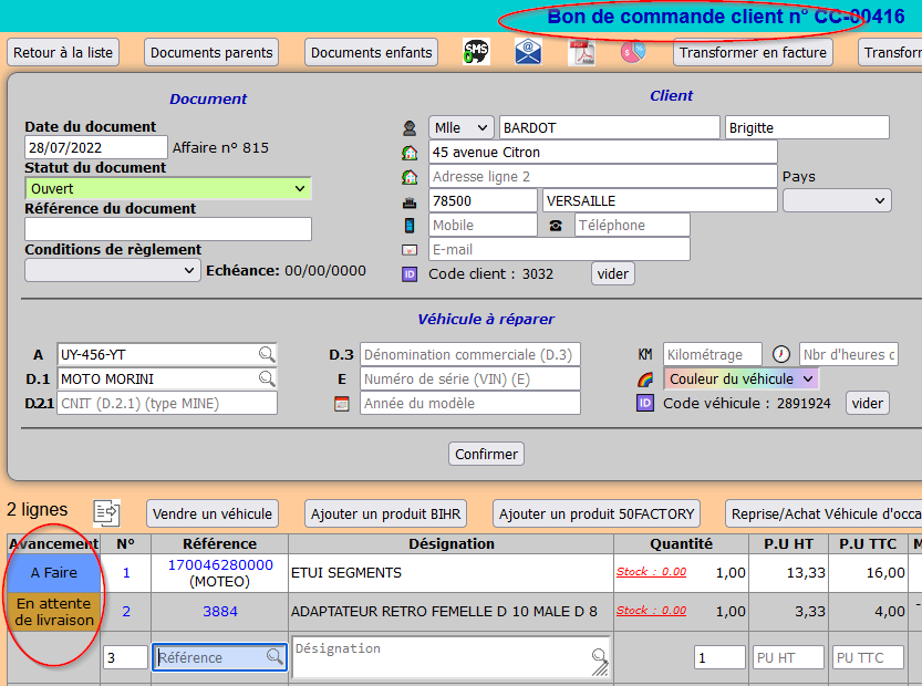 Comme vous le savez déjà certainement, MotoClic offre le possibilité d’indiquer un statut d’avancement pour chaque ligne des Ordres de Réparation. Ex: