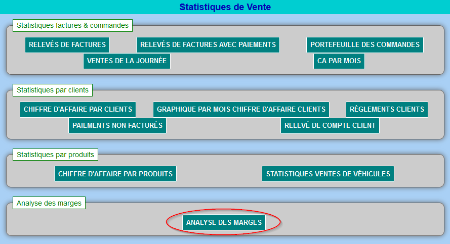 En plus des statistiques de ventes par produits ou par clients, MotoClic vous propose d’examiner les marges réalisées sur une période choisie, à quatre niveaux :