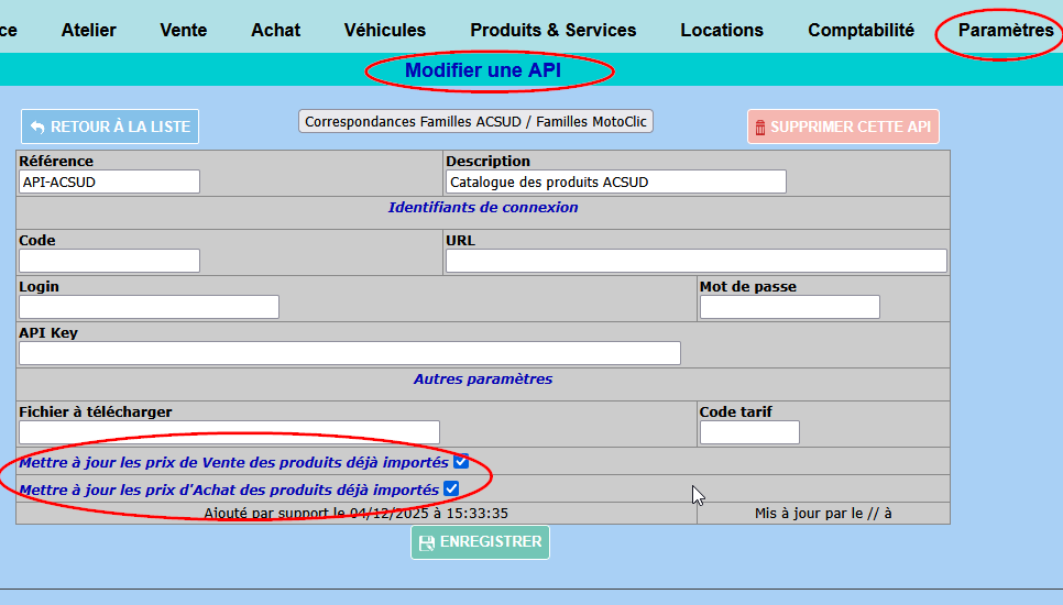 Vous devez aussi souscrire à l’option « Import des produits ACSUD » de MotoClic. Contactez-nous pour cela.