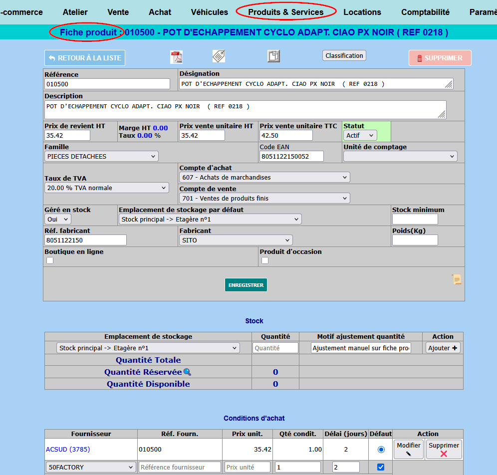 …et une Fiche Produit est créée dans MotoClic pour le suivi du stock :