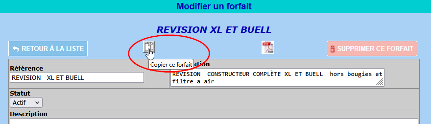 Si vous avez de nombreux forfaits similaires à entrer dans le système, vous pouvez vous servir de ce bouton pour copier un forfait existant afin de gagner du temps :